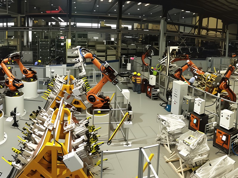 汽車零配件廠自動(dòng)焊裝線,使用庫(kù)卡機(jī)器人焊接、物料抓取,夾具可自動(dòng)旋轉(zhuǎn),全程實(shí)現(xiàn)自動(dòng)焊接。